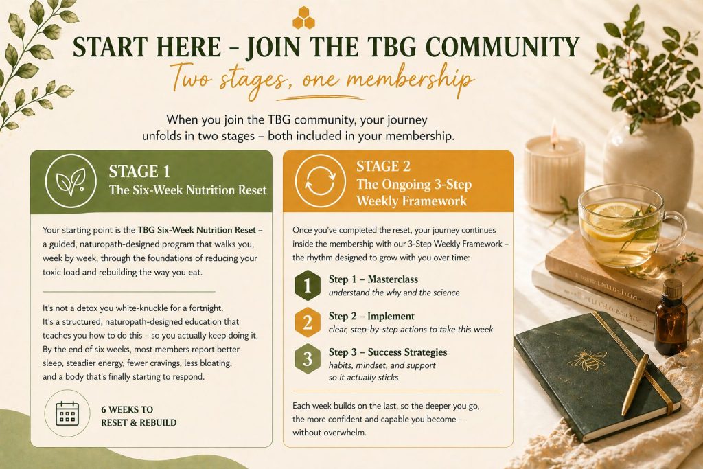 that gives you clear weekly steps, real food, and a supportive community – so you don’t have to figure it all out alone.