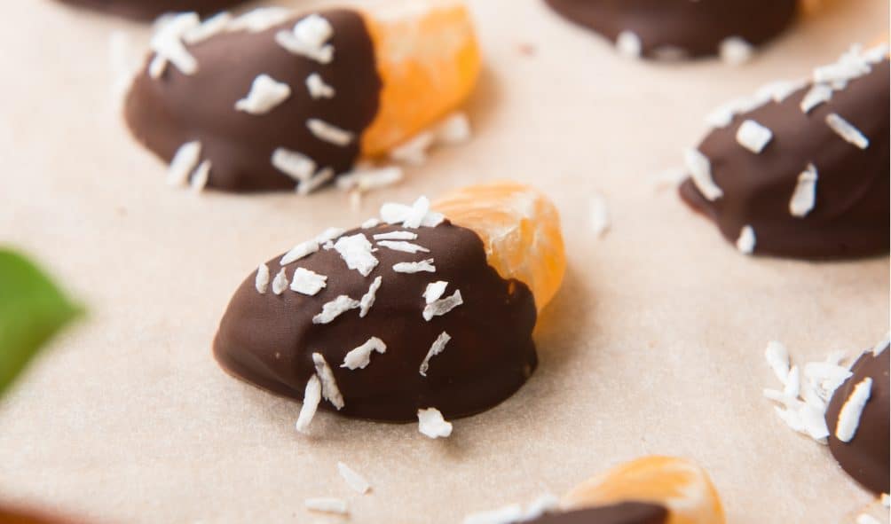 At just 166 calories per serving, these Chocolate Dipped Mandarin Wedges are perfect for those who are watching their calorie intake. They're packed with vitamin C, fibre, and essential nutrients that your body needs, making them a great alternative to high-calorie desserts.